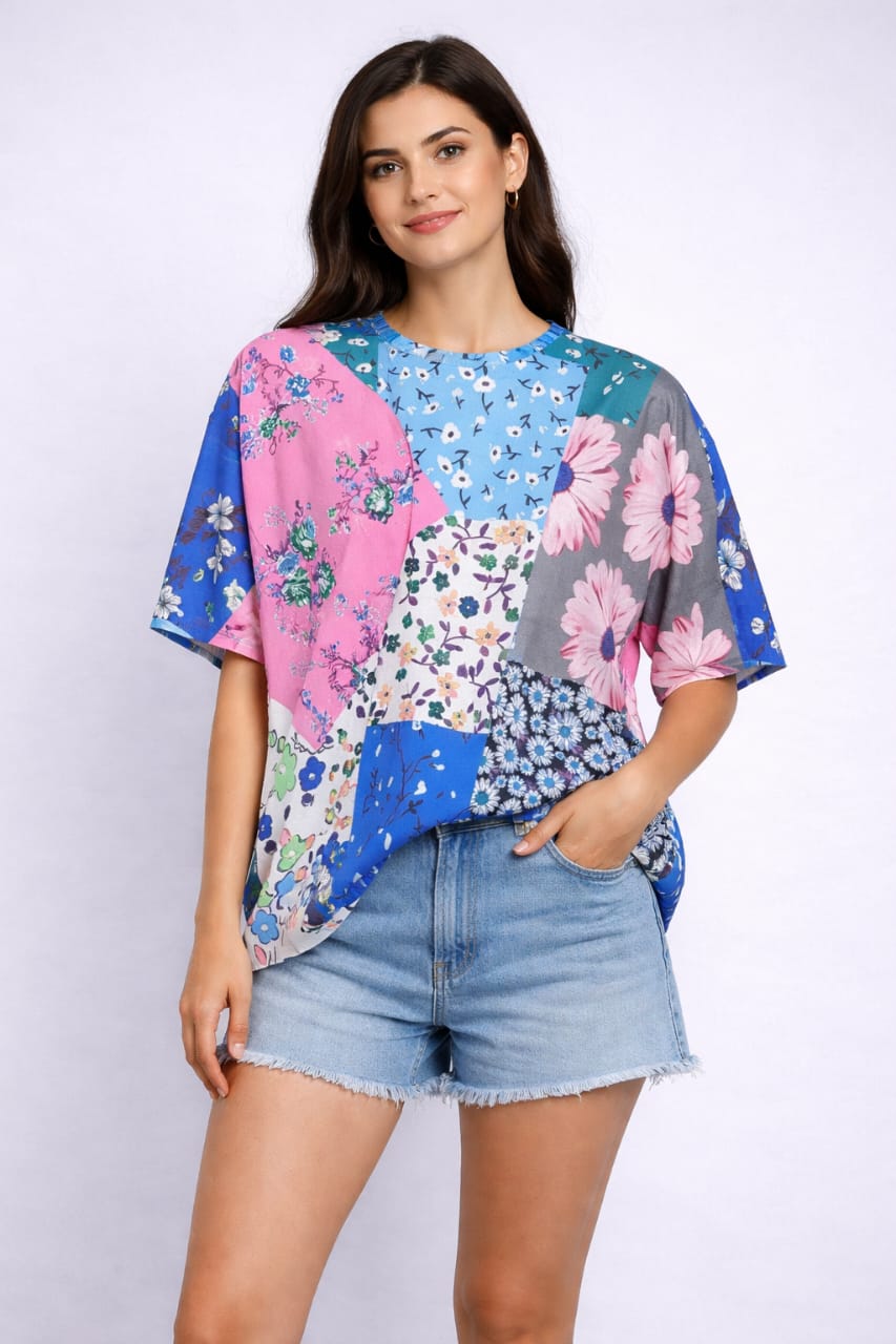 A loose fit Floral Multicolor, and sustainable cotton for maximum comfort during the summer months.